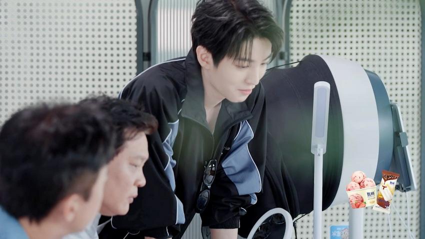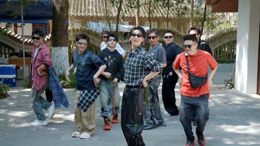 陈赫临时担任MV导演,走位调镜一手包办,还设计升格镜头和画面构图,导戏导得格外投入。王俊凯完成主歌部分后,主动为其他成员补唱和声,细节处理颇为用心。拍摄现场,他灵感迸发,拿起一把“韭菜”带头跳舞,现场即兴编出副歌的魔性动作,成为MV中的亮点之一。